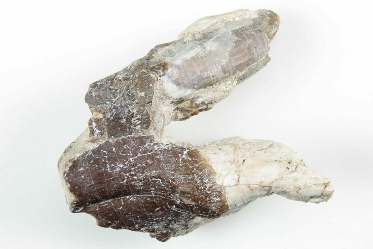 This is a 2.95" long tooth (molar) from Pappocetus lugardi, a type of protocetid cetacean (early whale ancestor). These rare teeth come from the Middle Eocene-age Aridal Formation, located in the Western Sahara near Gueran, Morocco. Both the root and crown are natural.