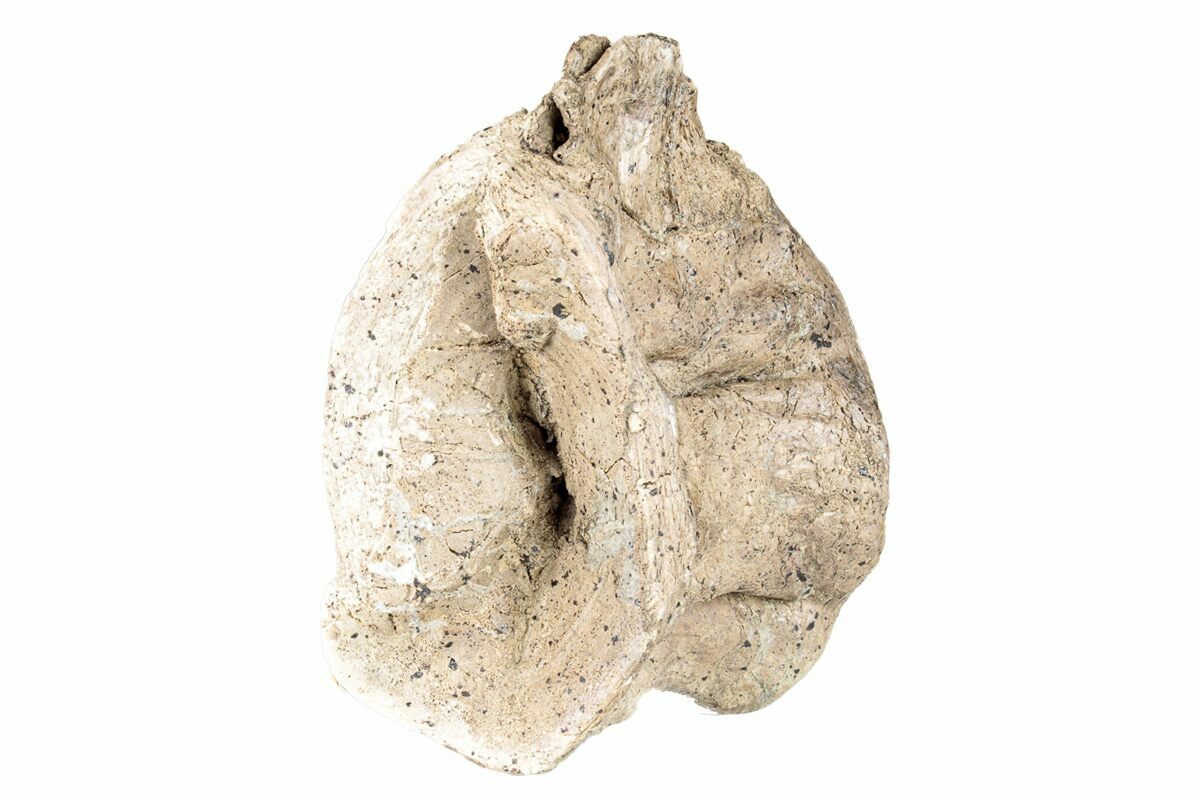 This is a 2.95" wide fossil Xiphactinus audax vertebra from the Niobrara Formation of Gove County, Kansas. This vertebra experienced some compression during fossilization.
