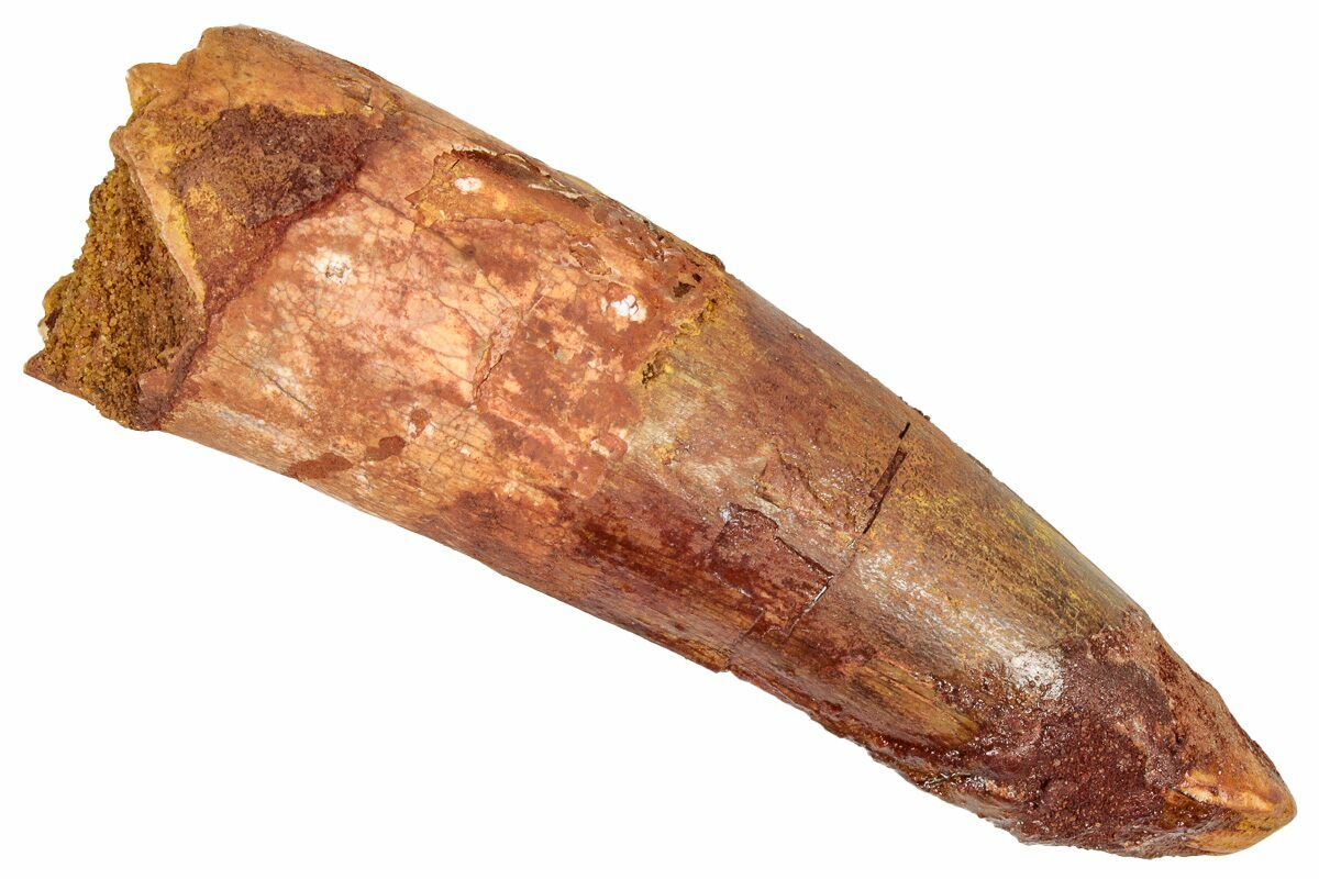 This is a 2.98" long Spinosaurus tooth from the Kem Kem Beds of Morocco. It is Late Cretaceous in age, approximately 95 million years old.