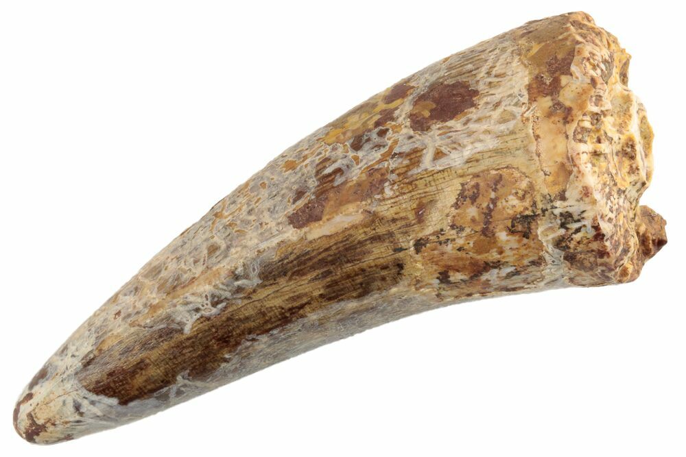 There are spots where the enamel has chipped away and a few repaired cracks. For a tooth this size, the level of preservation is very nice.