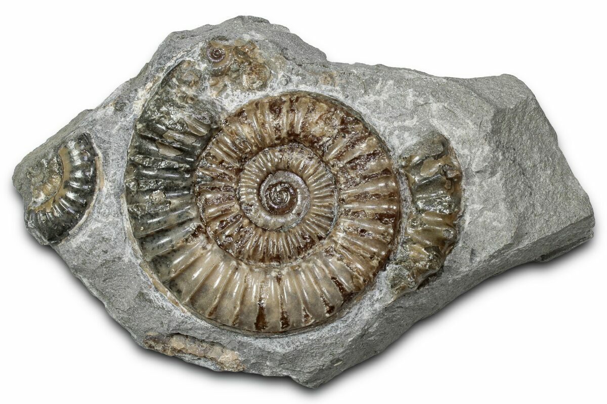 Ammonites were ancient marine cephalopods, similar to today's squids and octopuses, but with a defining feature: their distinctive, tightly coiled spiral shells. These shells, resembling those of modern nautiluses, served as both a protective home and a buoyancy aid, allowing ammonites to navigate the prehistoric seas with ease. First emerging around 240 million years ago in the Triassic Period, ammonites thrived for over 175 million years, adapting through numerous forms and sizes. As predatory creatures, they likely fed on smaller marine organisms, using their tentacles to capture prey. However, their long reign came to an end 65 million years ago at the close of the Cretaceous, coinciding with the mass extinction event that also eliminated the dinosaurs.
