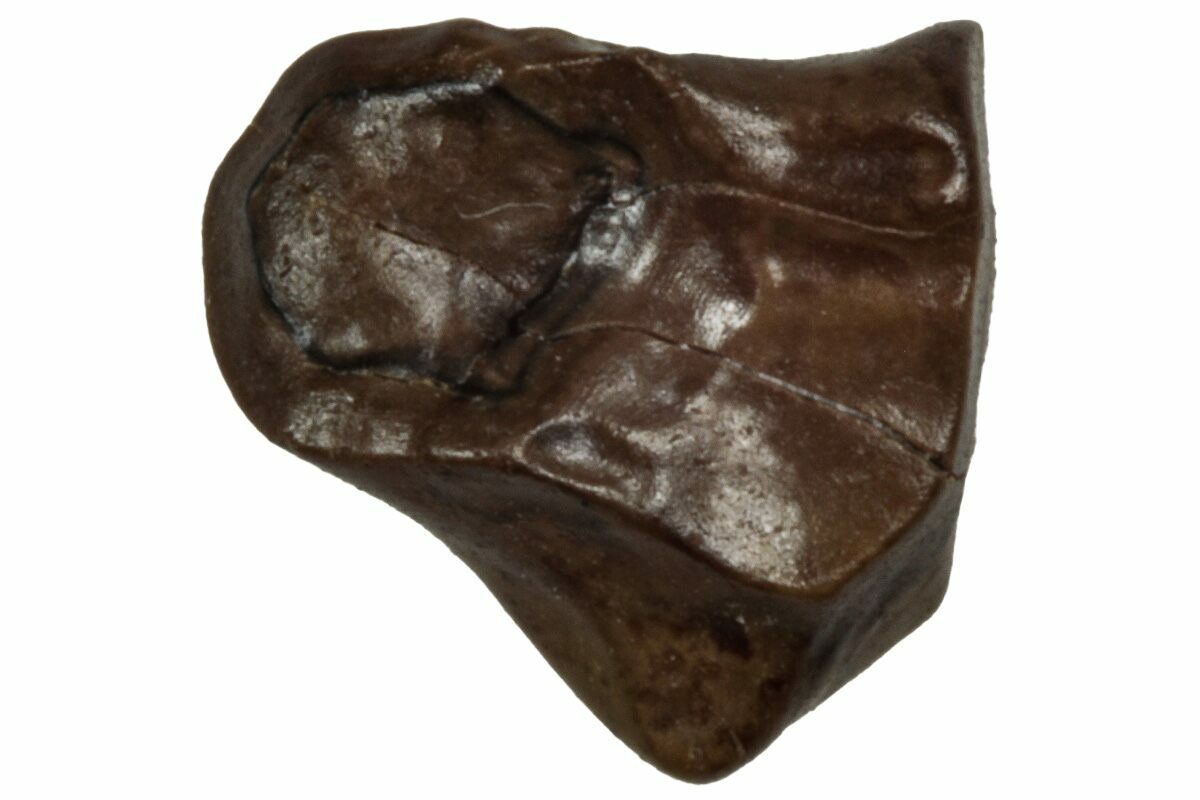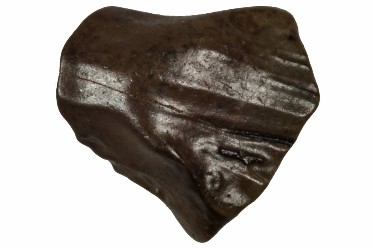 This is a .20" long tooth of the neornithischian dinosaur, Thescelosaurus garbanii. It was collected from the Late Cretaceous-aged Hell Creek Formation in Montana. The apical end of the tooth shows feeding wear.