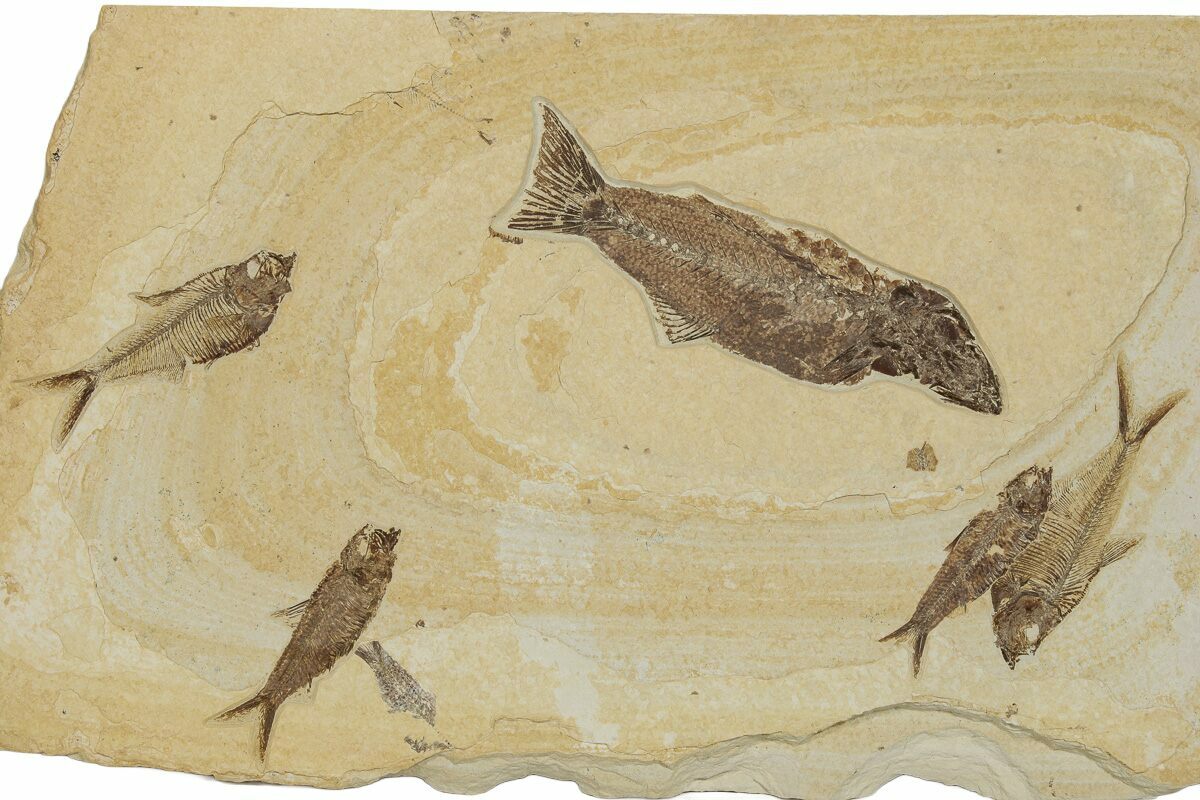 22" Beautiful Limestone with Five Fossil Fish - Wyoming