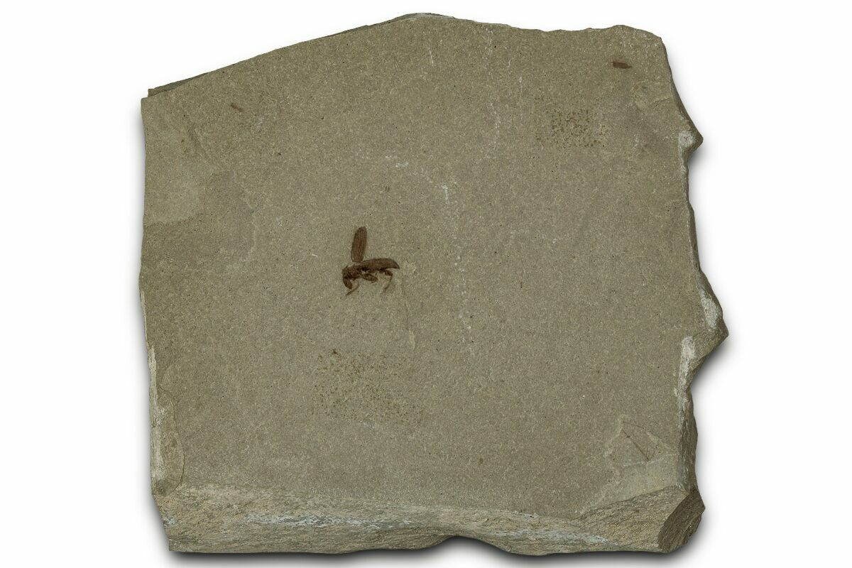 This is a detailed, .25" long fossil weevil (family Curculionidae) from the Green River Formation of Utah. While this formation is best known for well preserved fossil fish found in Wyoming, other sections of the formation contain a very diverse insect fauna.