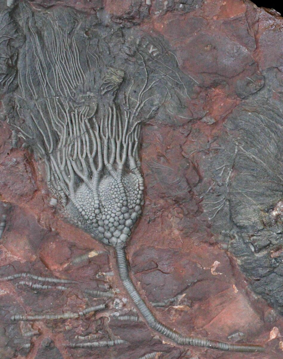 Because these crinoids have to be pieced back together during preparation there is always some repair and restoration to the plate, and this one is no exception.