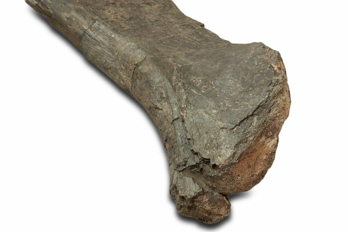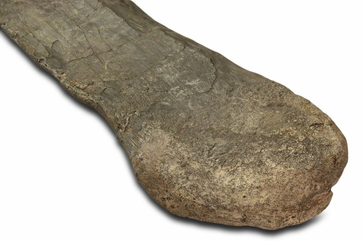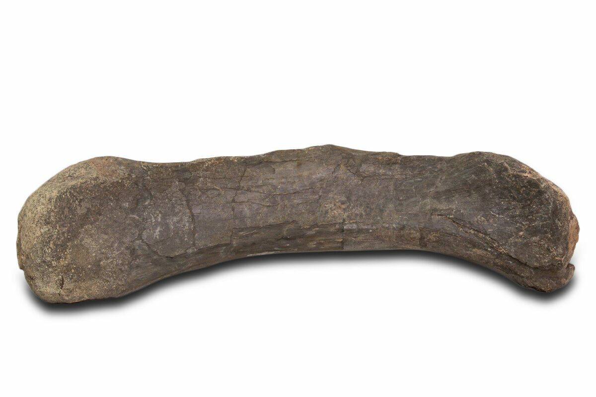 This is a 26" long fossil sauropod dinosaur (Camarasaurus sp.) pelvic bone (pubis), collected from the Late Jurassic-aged Morrison Formation in Colorado. The bone is very dense from silicification (gembone).