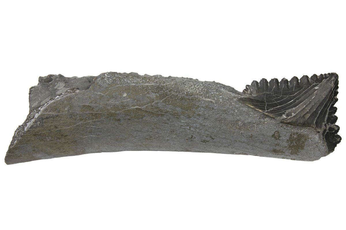 Edestus was a was a very unusual shark that is only known from it's teeth and jaw sections. It's estimated they could reach 20 feet in length, about the same size as a modern great white. Like it's other relatives like Helicoprion it did not shed it's teeth as they became worn. This caused the jaws to become elongated and resemble a monstrous pair of shears. It's unclear how these sharks would have caught and ate their prey with this jaw configuration.