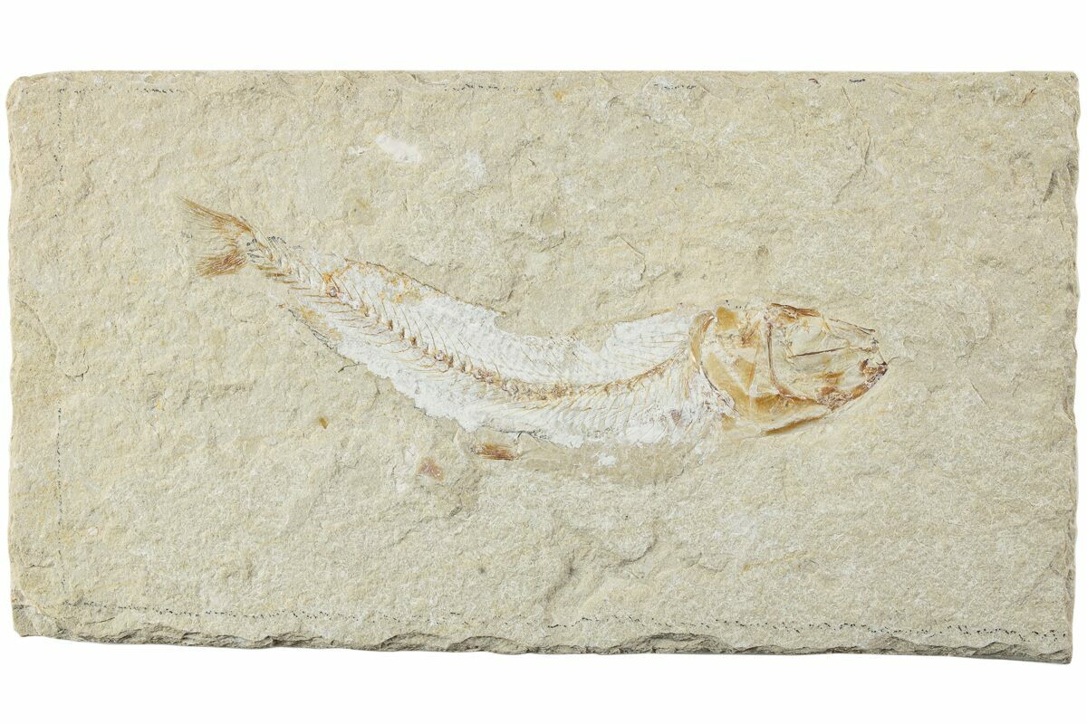 This is a bargain, fossil fish from the Upper Cretaceous marine deposits near Hakel, Lebanon. There are dozens of species of fish described from these deposits which makes identification difficult. Given that the preservation of these fossils is a top-down view it makes identification even more difficult, though the most likely candidates are of the genera, Armigatus and Scombroclupea.