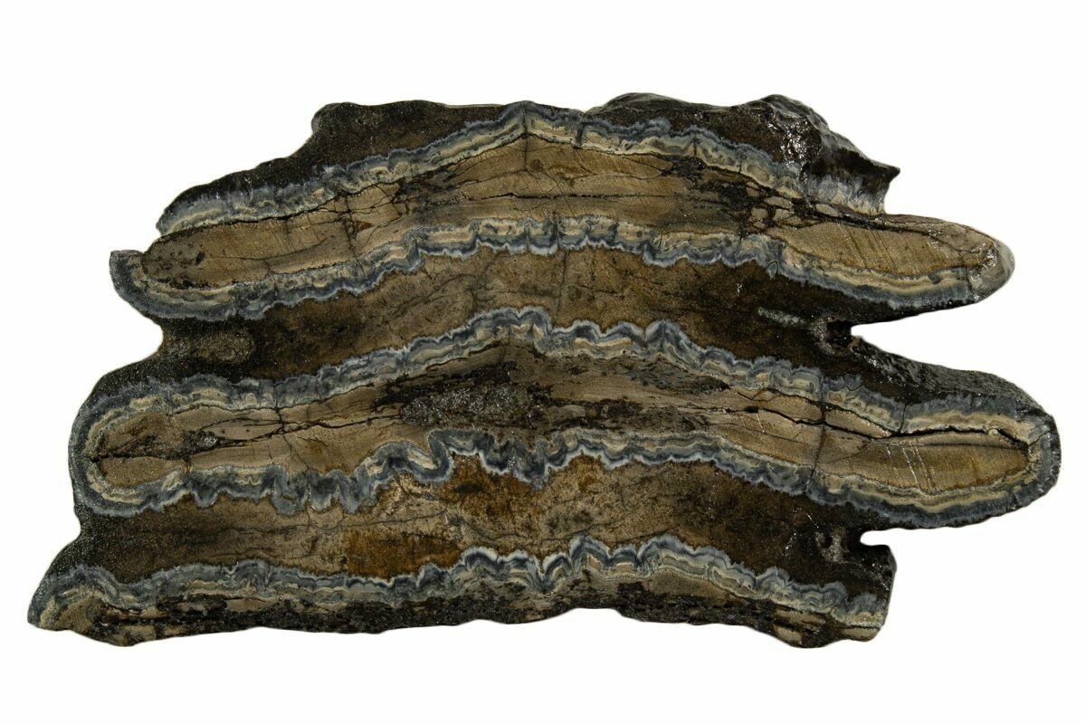 This is a interesting, cross-sectional slice of a Columbia Mammoth (Mammuthus columbi) molar collected from the coastal region of South Carolina. It comes with a riker mount display case.