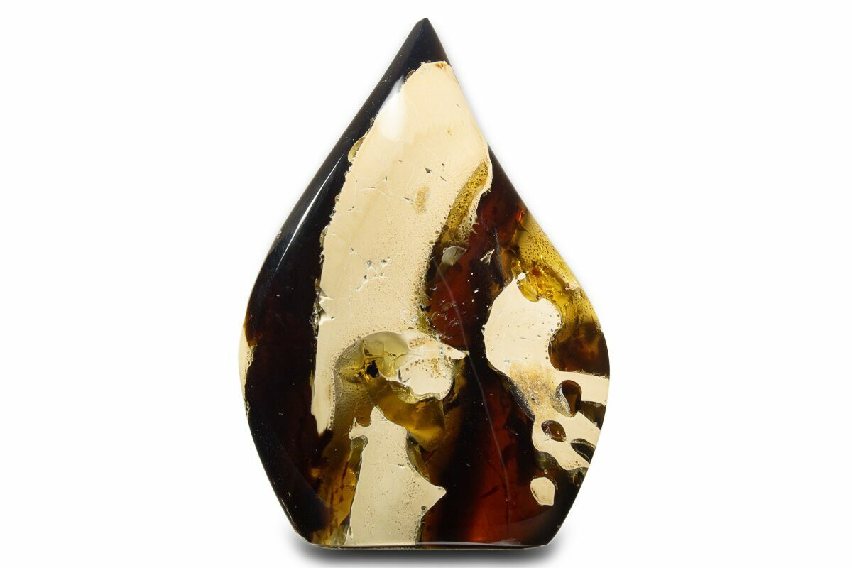 This is a 3.1" tall piece of "blue" amber collected from coal deposits near West Kalimantan, Indonesia. It has been shaped in the a "flame" sculpture and the base is cut flat so that it stands up nicely on a flat surface.