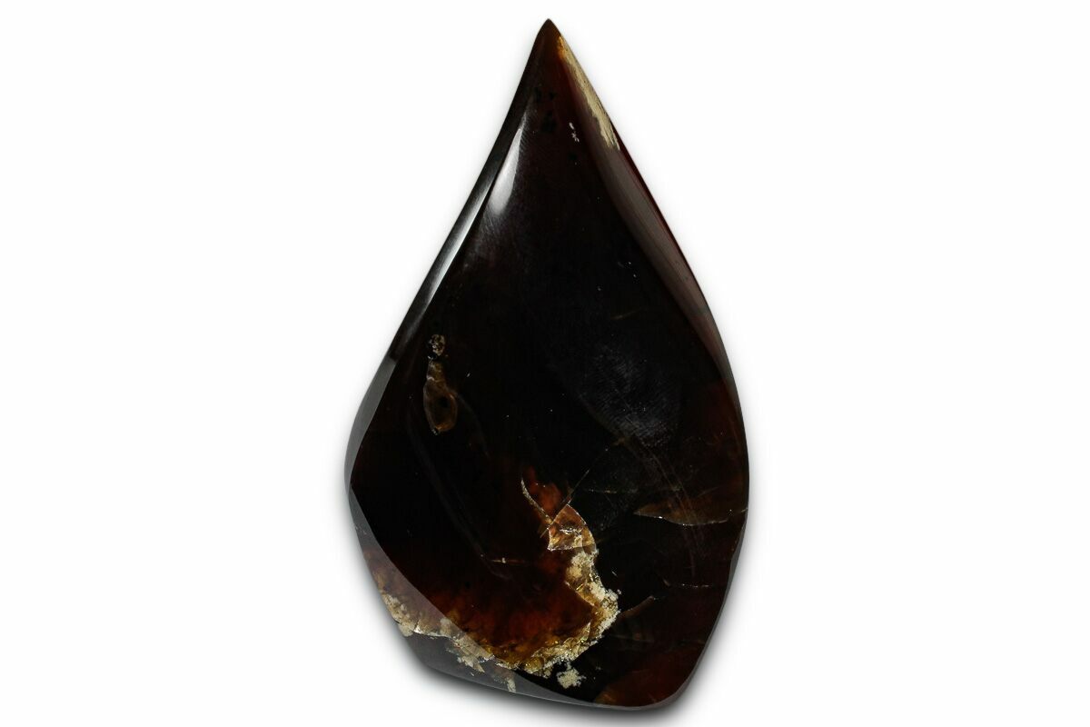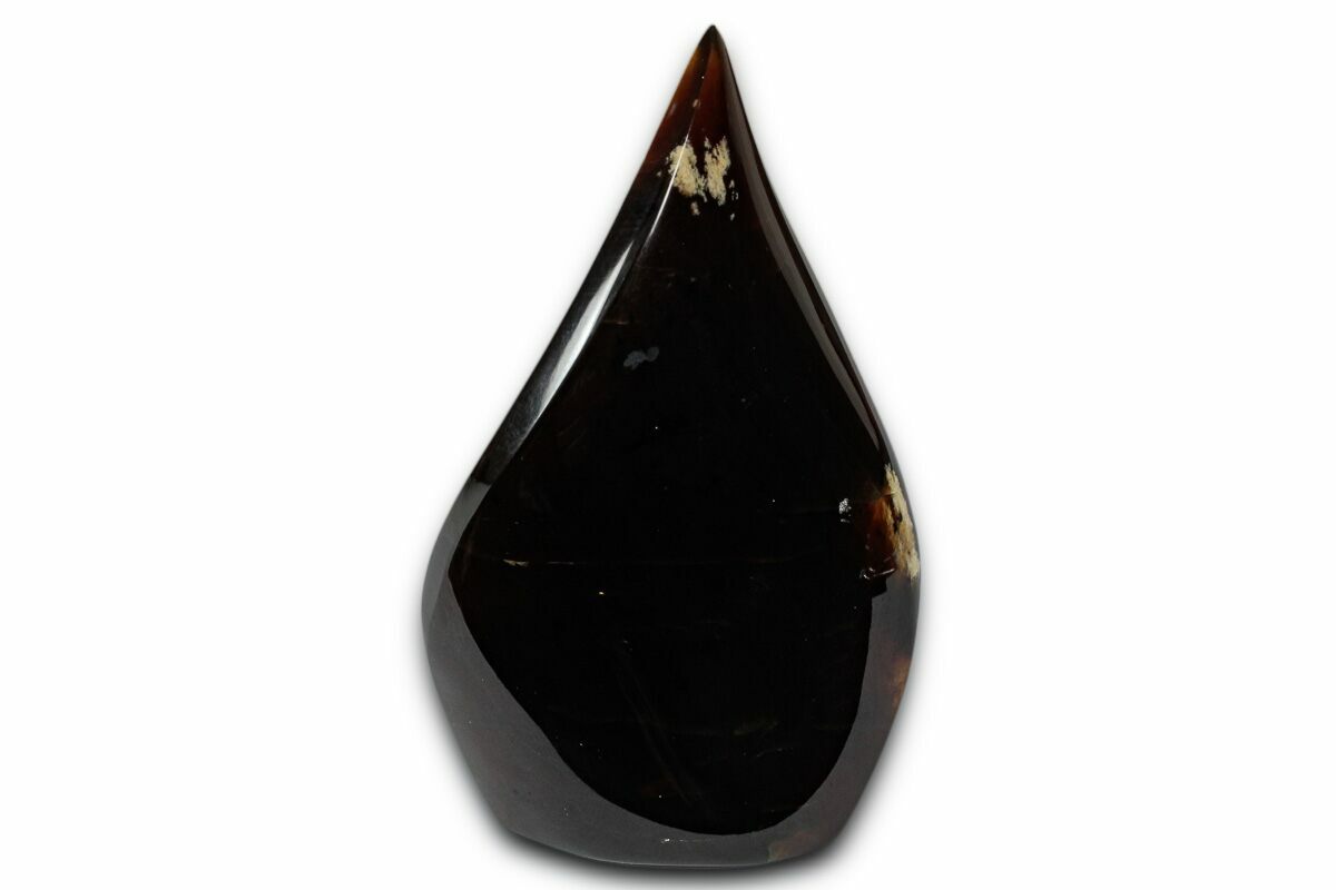 This is a 3.1" tall piece of "blue" amber collected from coal deposits near West Kalimantan, Indonesia. It has been shaped in the a "flame" sculpture and the base is cut flat so that it stands up nicely on a flat surface.