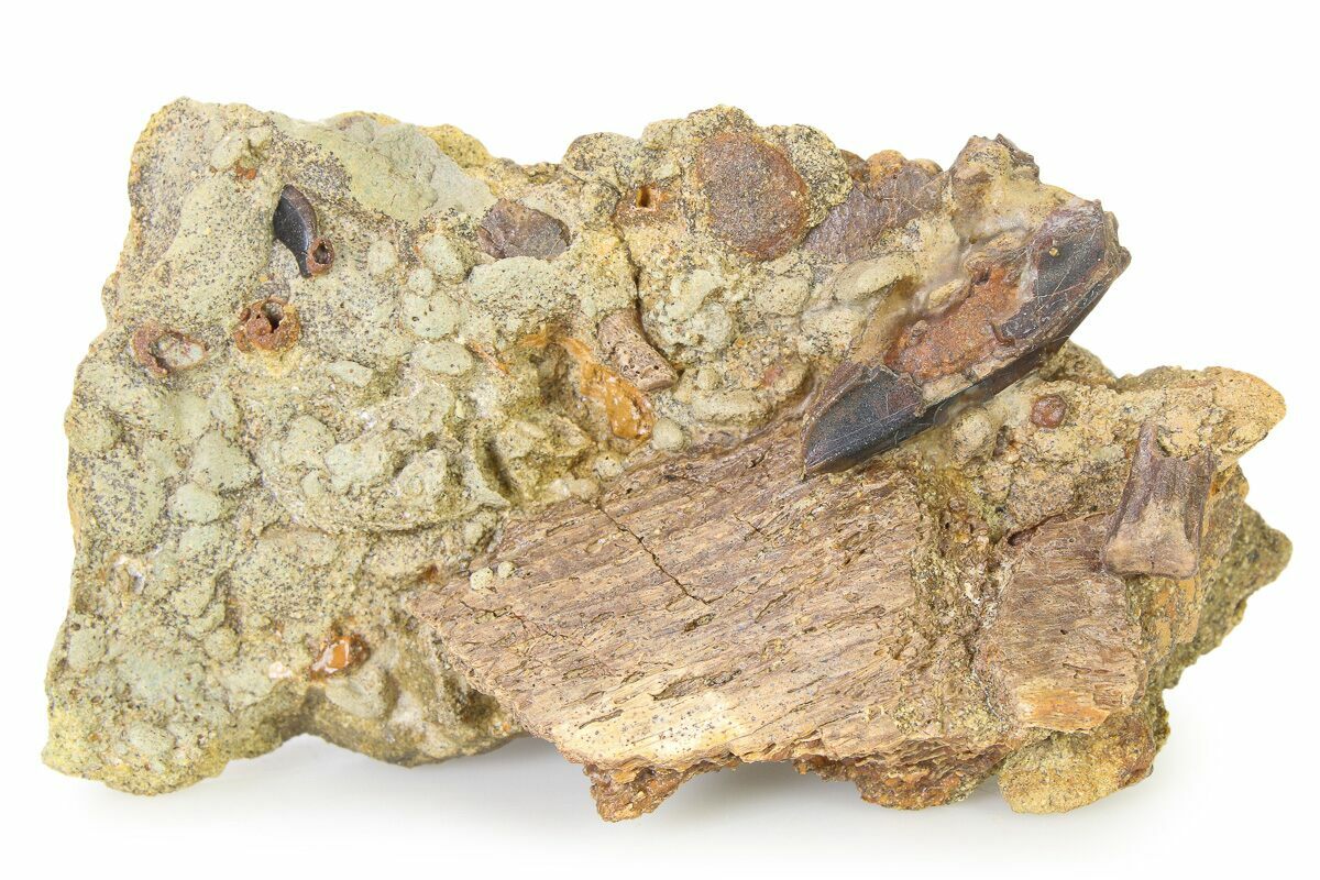 3.1" Sandstone with Hadrosaur Tooth and Bone Fragment - Wyoming