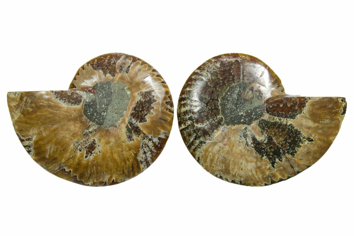 It exhibits gorgeous mineralization within the chambers, each separated by white calcite septa (divisions). This highly polished exotic ammonite makes a superb display piece with tremendous historical appeal.