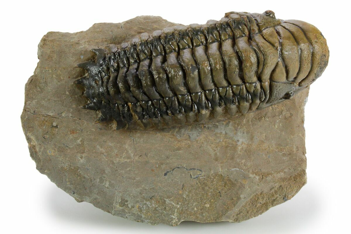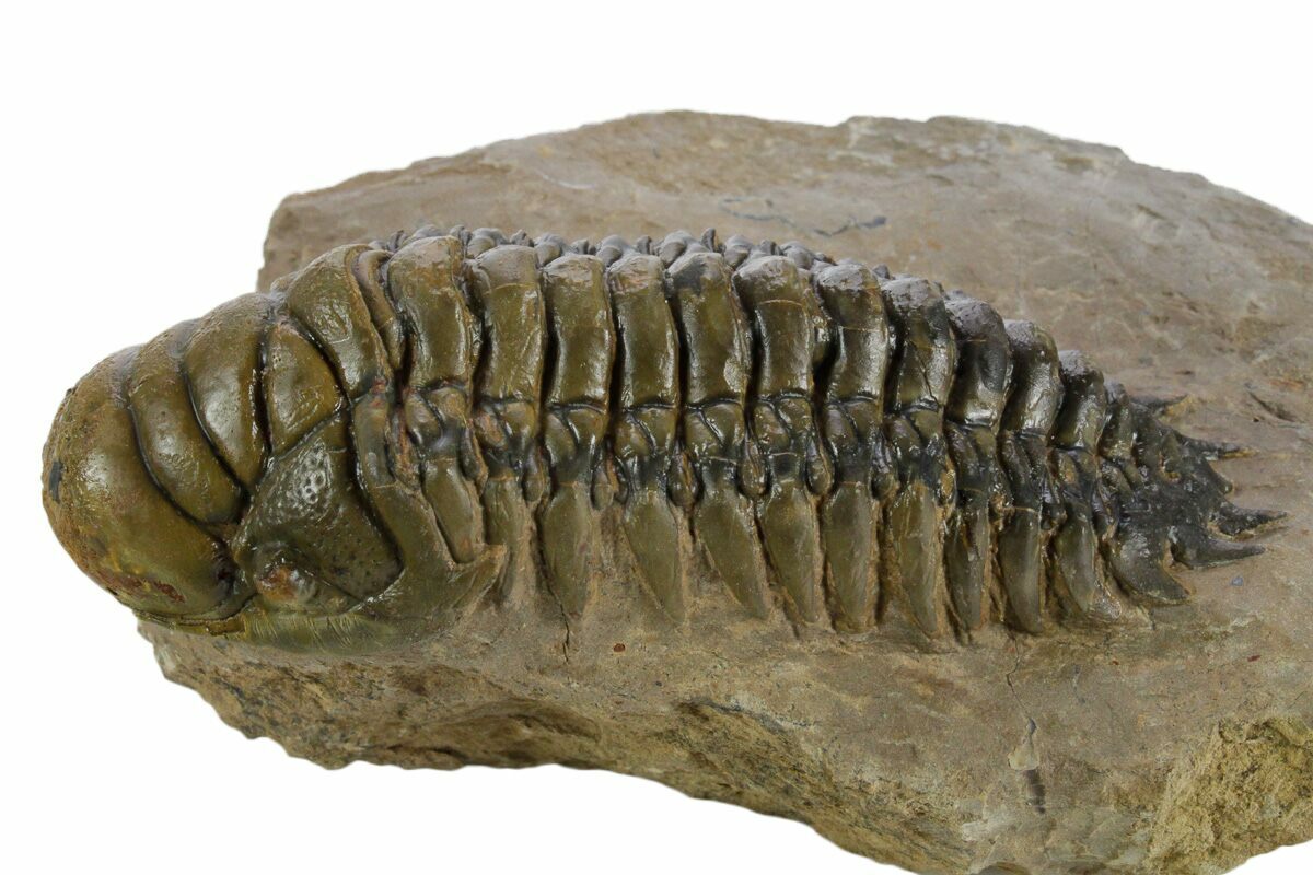 This is a detailed, 3.2" long, trilobite (Crotalocephalina gibbus) quarried from the Lhandar Formation near Atchana, Morocco. It is nicely inflated and has been prepared from the surrounding limestone so that it looks like it is ready to crawl off of the rock.