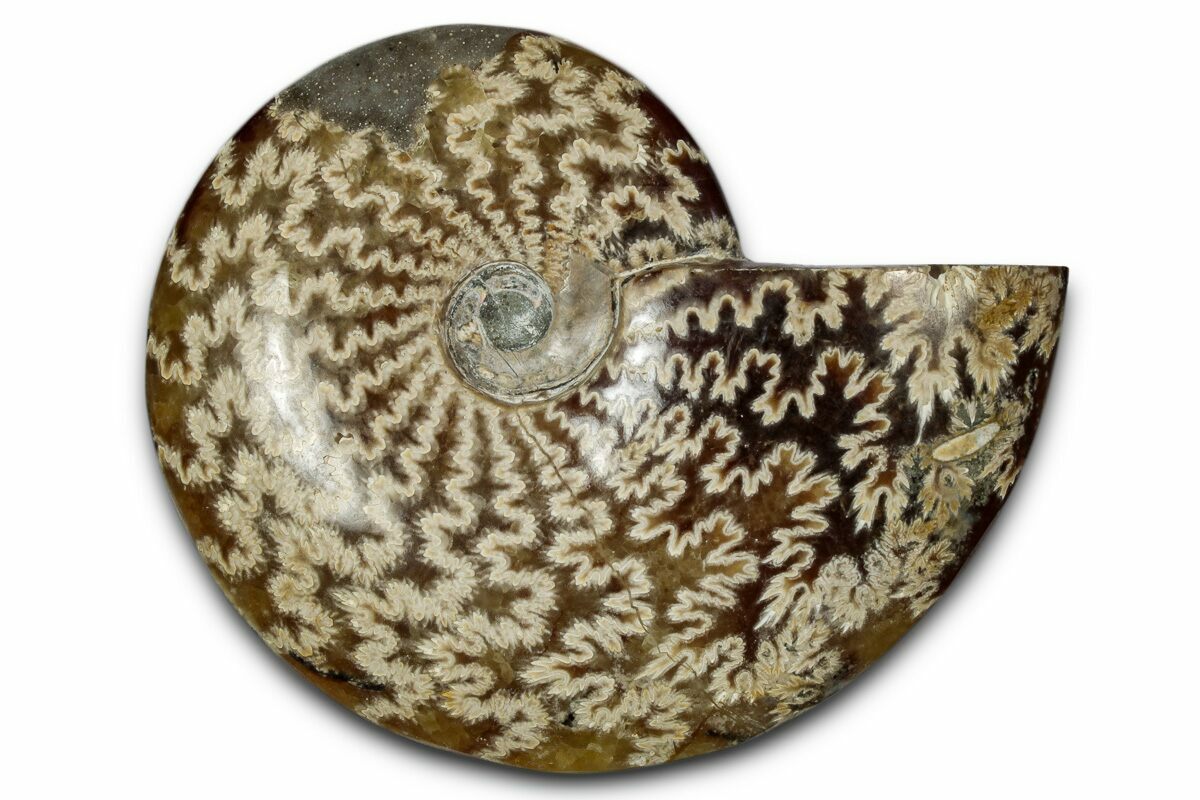 This is a 3.2" wide polished ammonite of the genus Cleoniceras, collected in Madagascar. It is absolutely gorgeous, displaying a distinctive "oak-leaf" suture pattern on the surface. This 110 million year old ammonite is truly a natural work of art, displaying beautifully on the included acrylic stand.