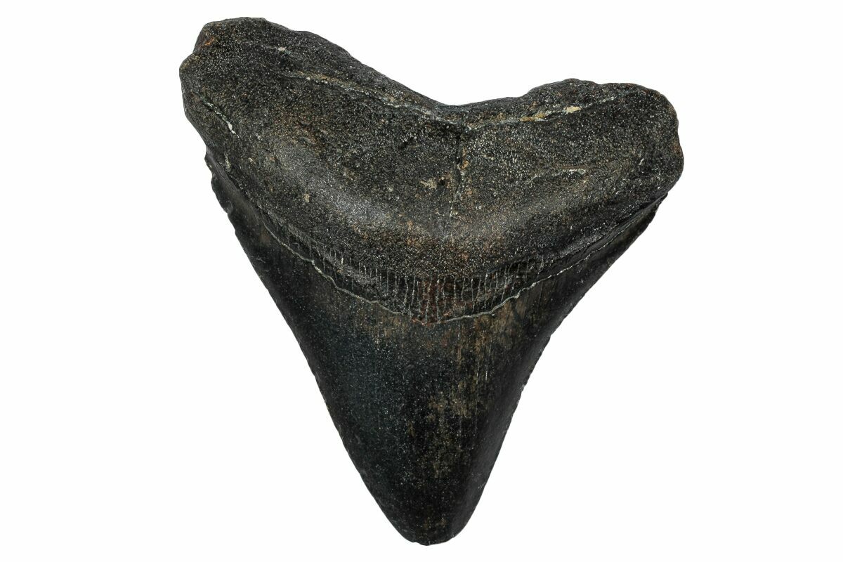 Megalodon had a cosmopolitan (global) distribution and its giant teeth can be found in deposits throughout the world. Some are collected on land in phosphate deposits, while many are collected from rivers and coastlines after eroding out of the rocks. This contributes to the water-worn, polished appearance of many teeth.