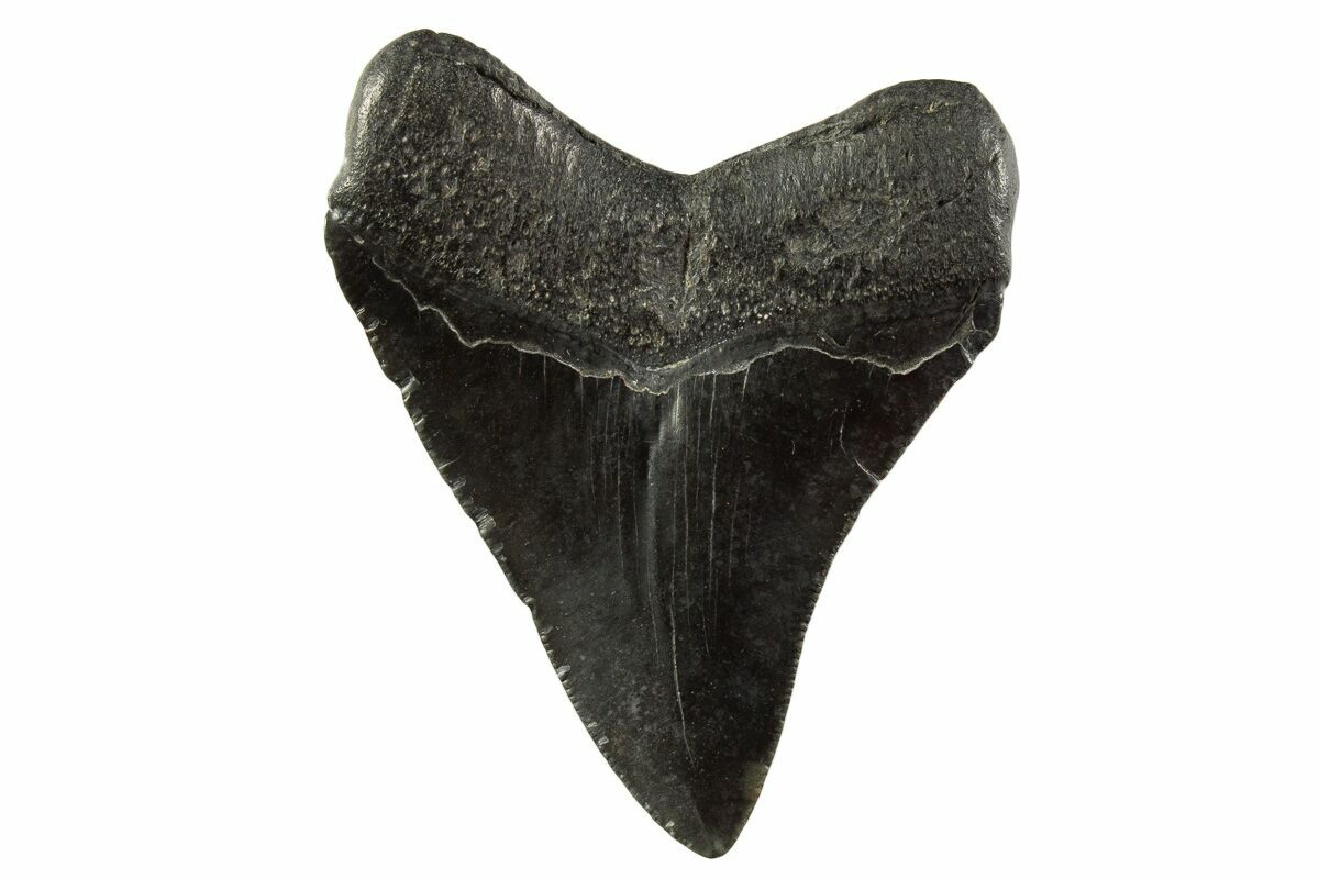 The standard measure for megalodon teeth is slant height, or the longest edge of the tooth. Adult megalodon teeth were typically in the 4 to 5 inch range: teeth over 6 inches are rare and represent super-sized individuals. Only a handful of teeth have ever been found over seven inches.