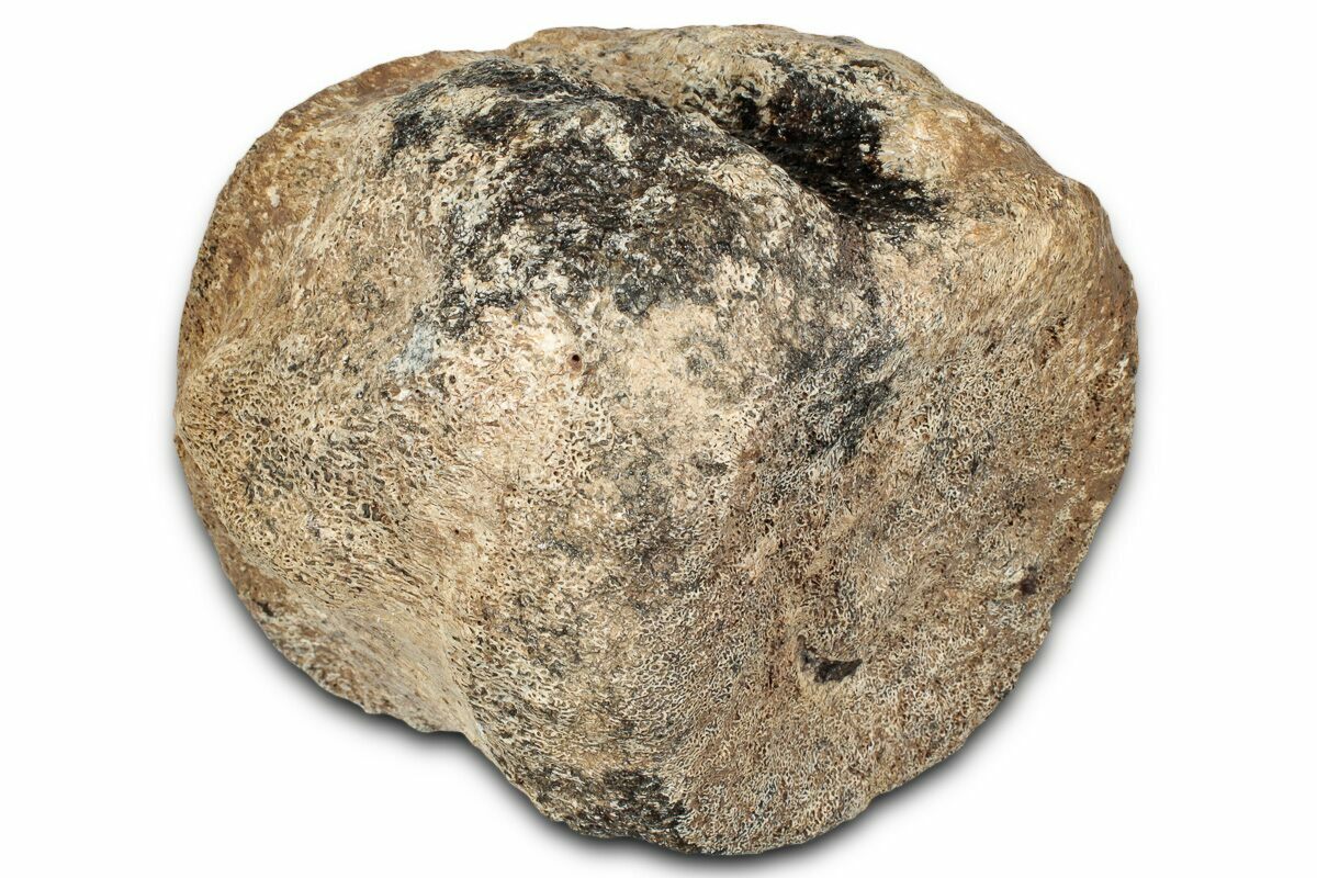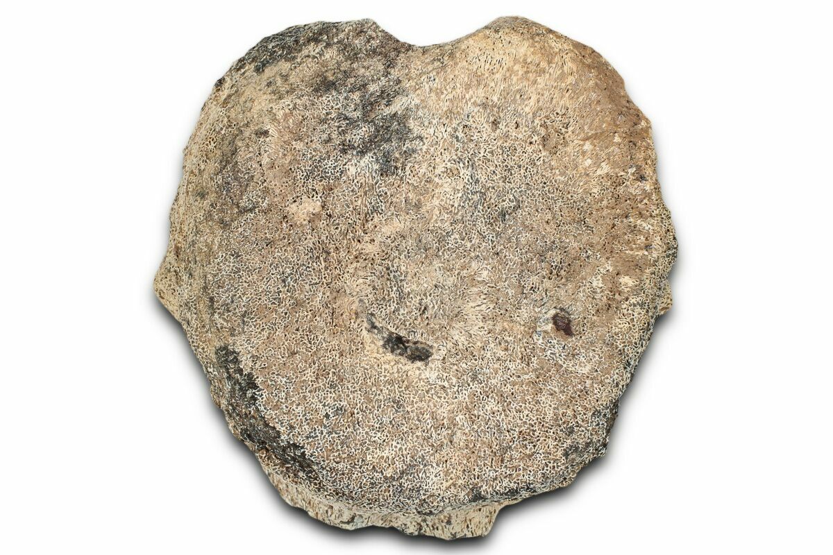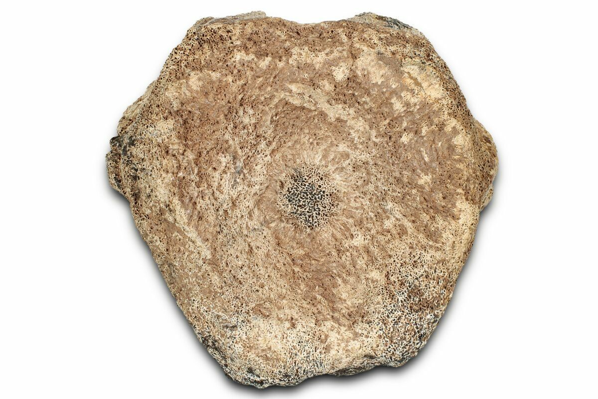 This is a 3.3" wide nodosaurid dinosaur (Sauropelta edwardsorum) vertebra centrum from the Early Jurassic-aged Cloverly Formation in Carbon County, Montana. The transverse processes and everything superior to the centrum is missing. No repair or restoration to this specimen.