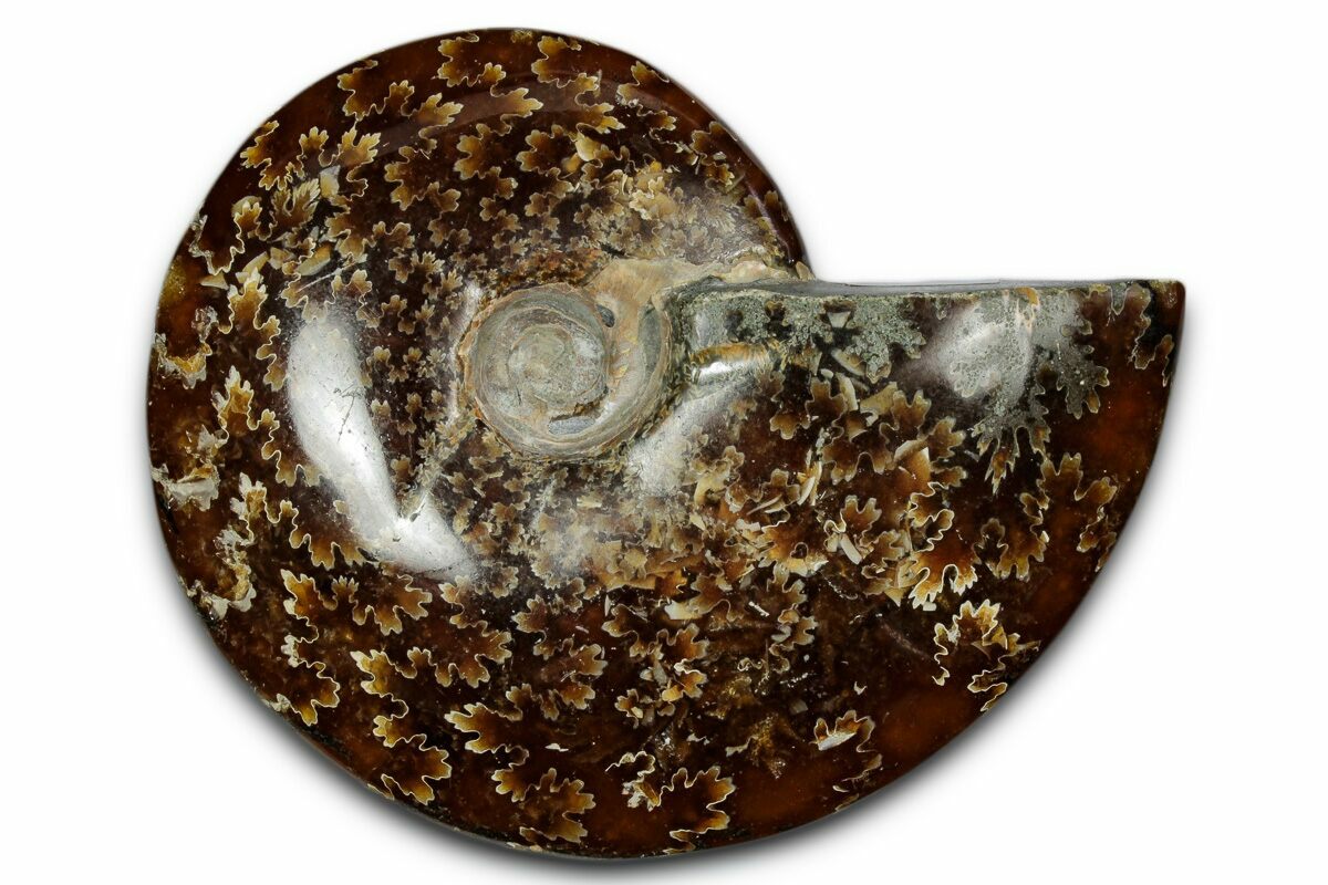 This is a 3.3" wide polished ammonite of the genus Cleoniceras, collected in Madagascar. It is absolutely gorgeous, displaying a distinctive "oak-leaf" suture pattern on the surface. This 110 million year old ammonite is truly a natural work of art, displaying beautifully on the included acrylic stand.