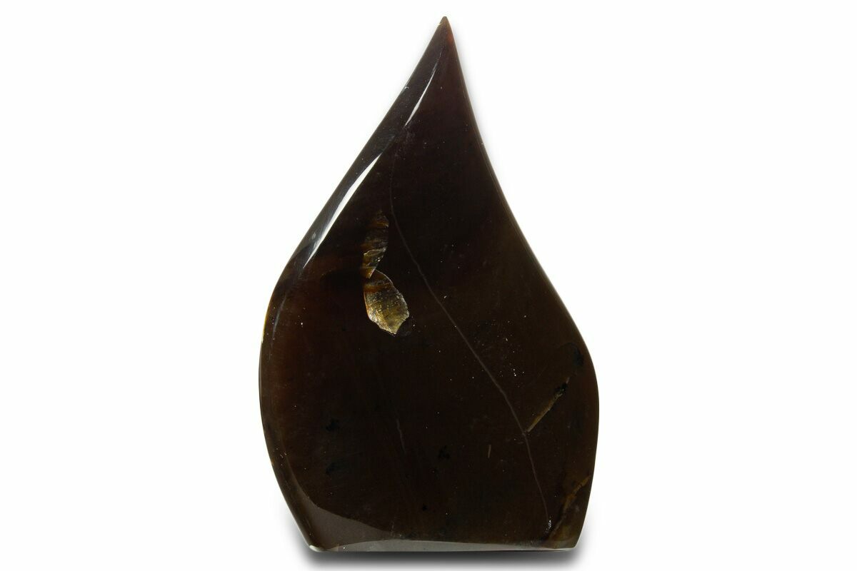 This is a 3.3" tall piece of "blue" amber collected from coal deposits near West Kalimantan, Indonesia. It has been shaped in the a "flame" sculpture and the base is cut flat so that it stands up nicely on a flat surface.