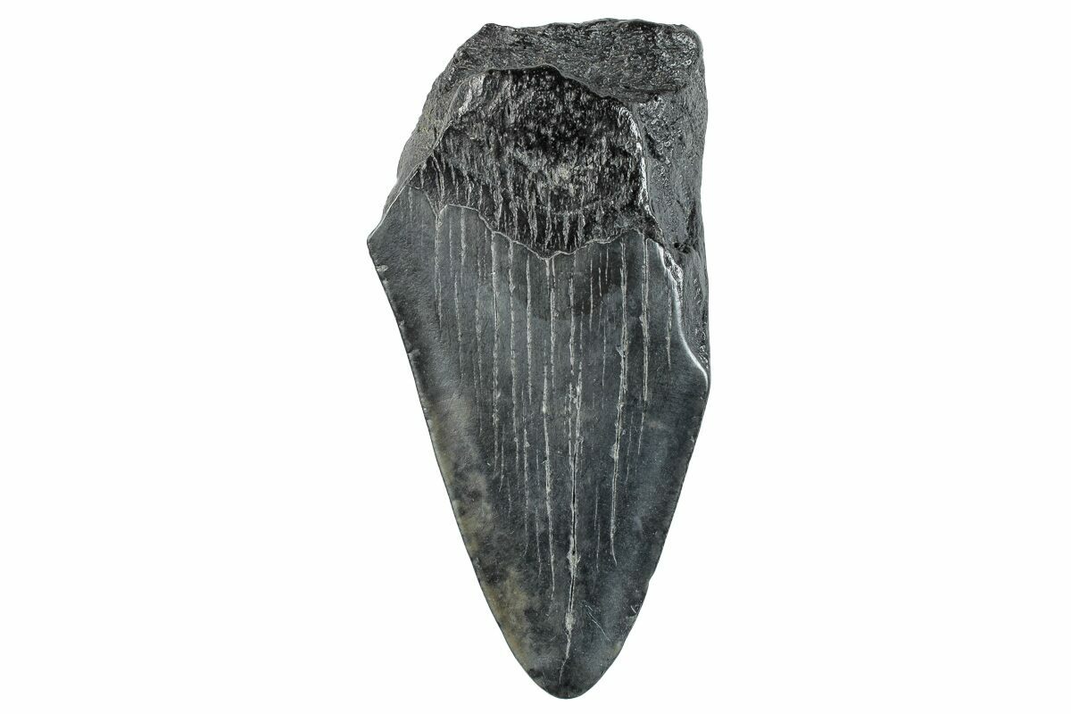 This is a bargain, 3.31" long fossil megalodon tooth collected from a river in South Carolina. The tooth would have come from a prehistoric mega-shark in the 30 foot size range.