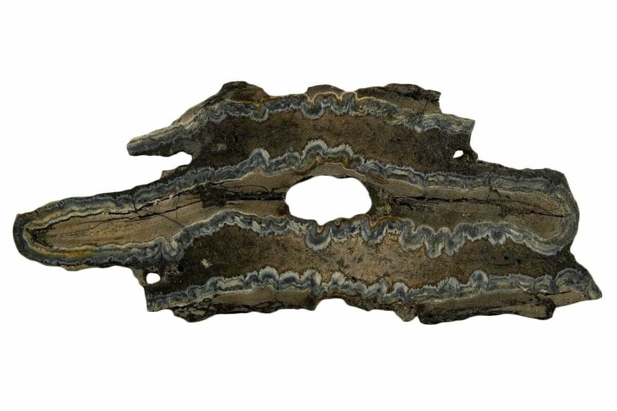 This is a interesting, cross-sectional slice of a Columbia Mammoth (Mammuthus columbi) molar collected from the coastal region of South Carolina. It comes with a riker mount display case.
