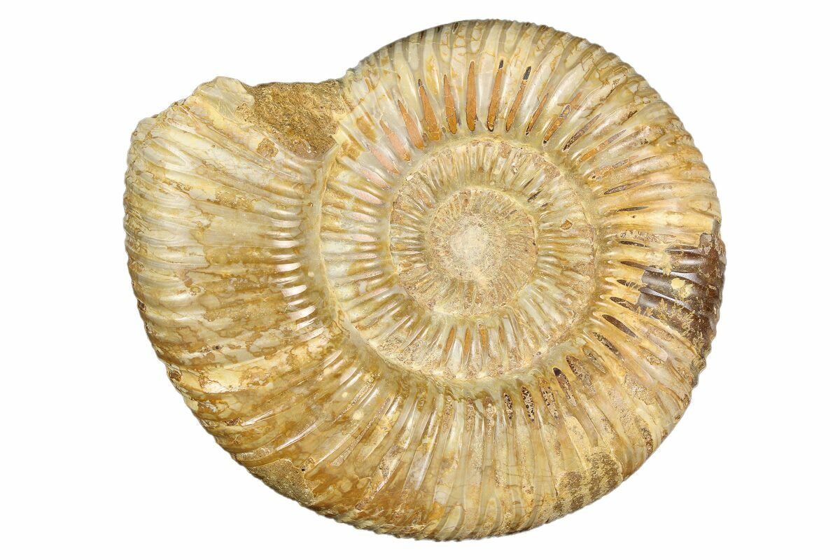 Ammonites were ancient marine cephalopods, similar to today's squids and octopuses, but with a defining feature: their distinctive, tightly coiled spiral shells. These shells, resembling those of modern nautiluses, served as both a protective home and a buoyancy aid, allowing ammonites to navigate the prehistoric seas with ease. First emerging around 240 million years ago in the Triassic Period, ammonites thrived for over 175 million years, adapting through numerous forms and sizes. As predatory creatures, they likely fed on smaller marine organisms, using their tentacles to capture prey. However, their long reign came to an end 65 million years ago at the close of the Cretaceous, coinciding with the mass extinction event that also eliminated the dinosaurs.