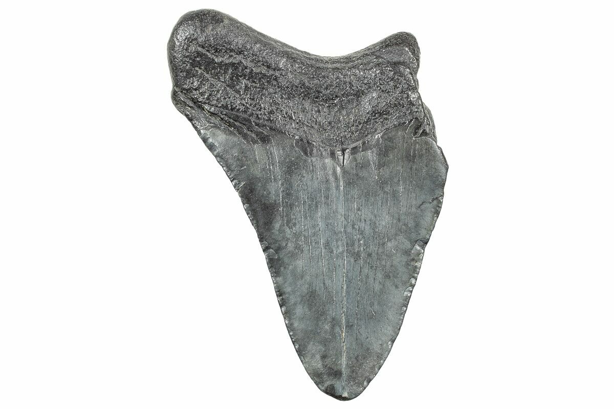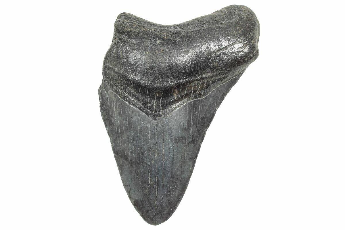 This is a bargain, 3.39" long fossil megalodon tooth collected from a river in South Carolina. The tooth would have come from a prehistoric mega-shark in the 30 foot size range.