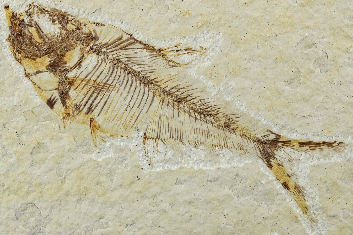 Today the wonderfully preserved fossils of Diplomystus and other Fossil Lake fauna are collected in several private quarries around Kemmerer, Wyoming. The best preserved fish fossils come from the coveted 18 Inch Layer. This layer is collected at night under high-powered lights, enhancing the faint signs of fish under the surface indicating underlying fossils. These “ghosted” fish then must go through many hours of manual preparation to remove the overlying rock and reveal the Green River fauna in all of its glory.