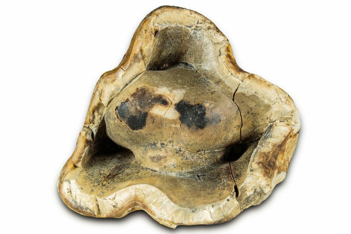 This is a beastly fossil tooth crown from the upper jaw of a woolly rhinoceros (Coelodonta antiquitatis). This fossil comes from Siberia, Russia, where many woolly mammoth and rhino fossils are unearthed. The tooth measures 3.4" tall.