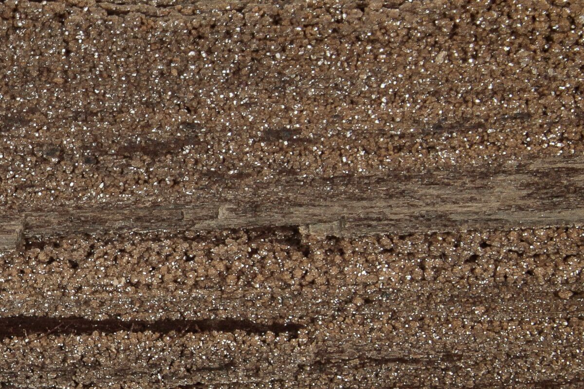 This is a 3.4" wide section of permineralized wood from Zwenkau, Germany. This resulted in very detailed preservation that makes this petrified wood specimen look as if it's ready to be thrown on the fire. The sparkles that can be seen in the photos are a result of druzy quartz that encrusts much of the wood.