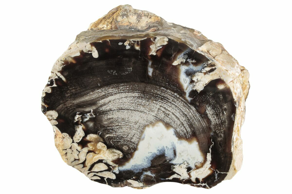 The host wood itself originated from ancient Araucaria trees, but it’s the activity of these shipworms that tells the real story. Their borings reveal that the wood spent time afloat in prehistoric oceans before fossilization, capturing a rare moment where marine and terrestrial environments intersected. As mineral-rich groundwater permeated the buried driftwood, the organic tissue was gradually replaced by silica, preserving both the wood structure and the shipworm tunnels in remarkable detail. The result is a visually stunning fossil that showcases not only the anatomy of an ancient conifer, but also the imprint of the tiny organisms that once lived inside it—making Australian peanut wood a beautiful intersection of biology, geology, and deep-time storytelling.
