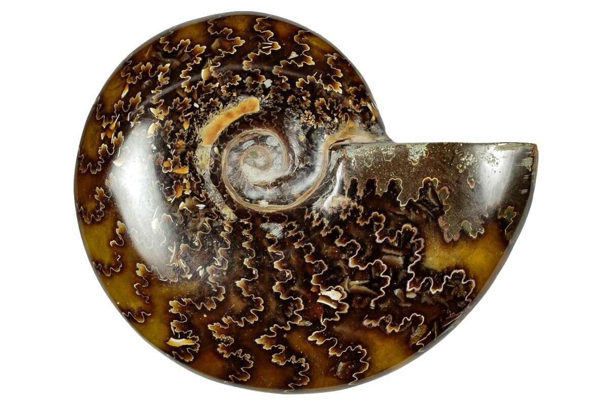 This is a 3.4" wide polished ammonite of the genus Cleoniceras, collected in Madagascar. It is absolutely gorgeous, displaying a distinctive "oak-leaf" suture pattern on the surface. This 110 million year old ammonite is truly a natural work of art, displaying beautifully on the included acrylic stand.