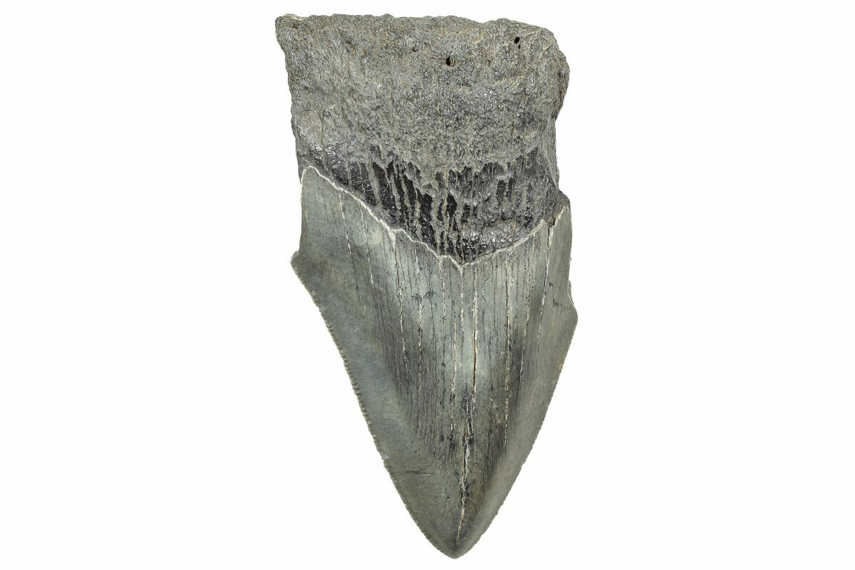 This is a bargain, 3.42" long fossil megalodon tooth collected from a river in South Carolina. The tooth would have come from a prehistoric mega-shark in the 30 foot size range.