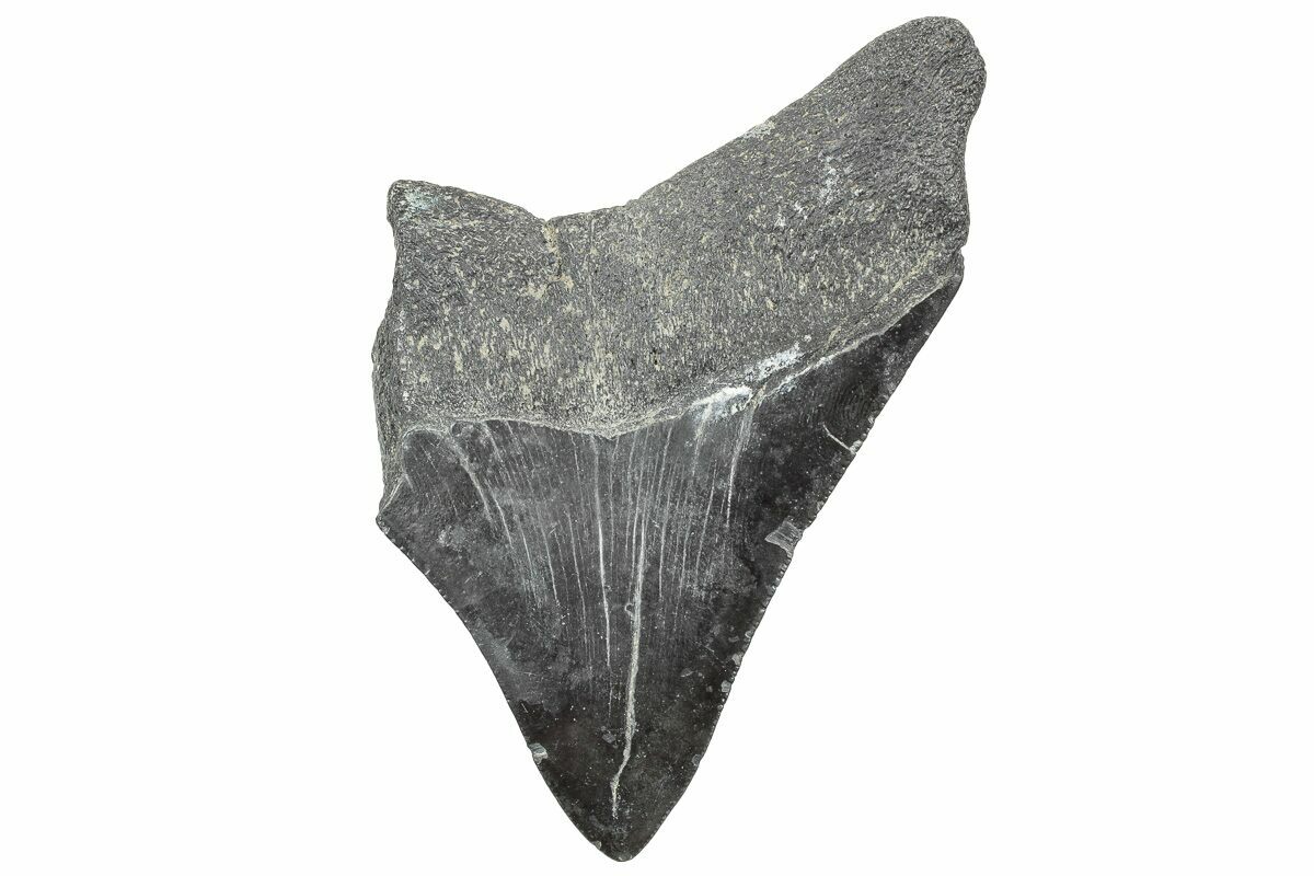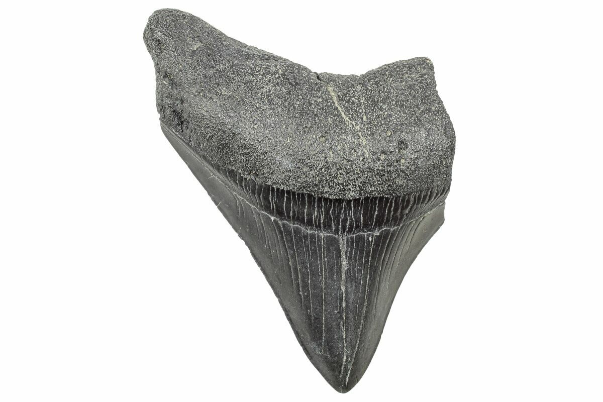 This is a bargain, 3.42" long fossil megalodon tooth collected from a river in South Carolina. The tooth would have come from a prehistoric mega-shark in the 30 foot size range.