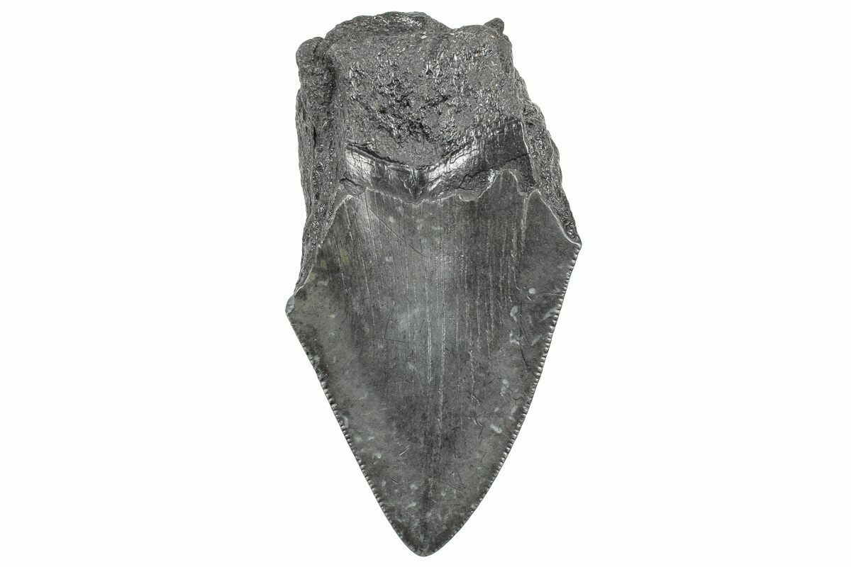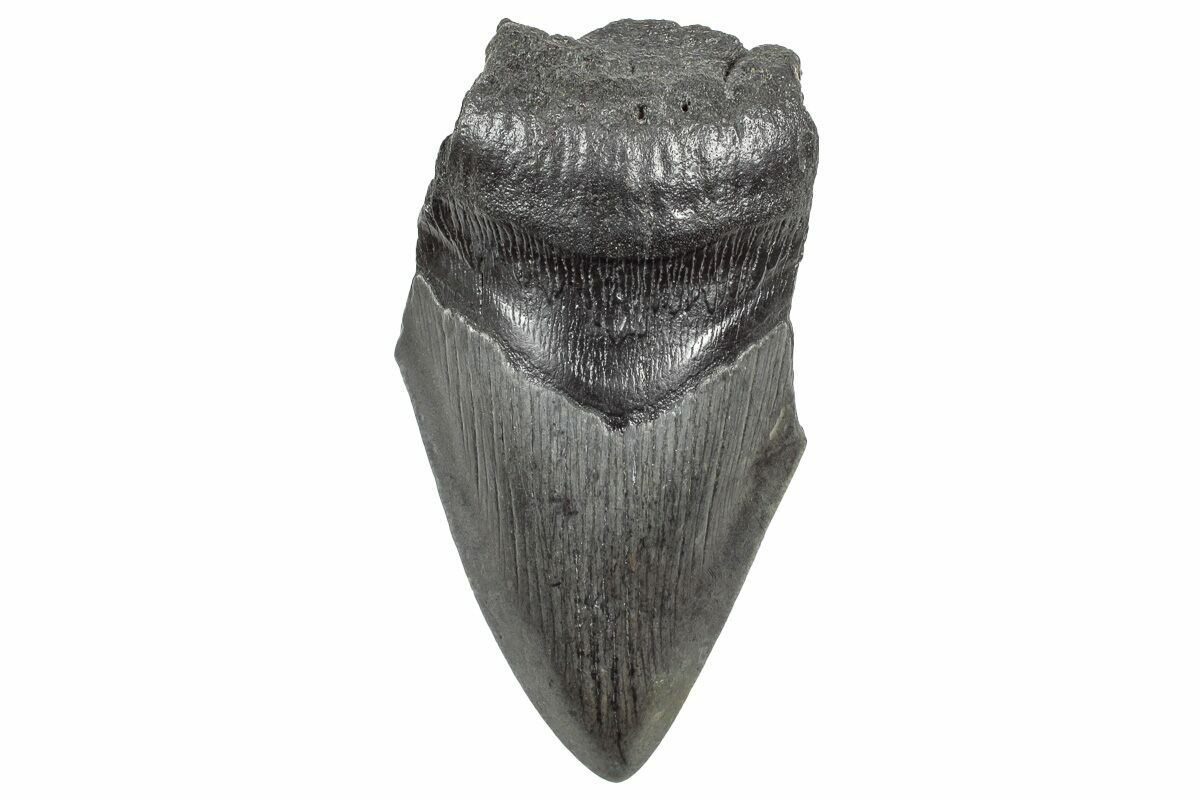 This is a bargain, 3.44" long fossil megalodon tooth collected from a river in South Carolina. The tooth would have come from a prehistoric mega-shark in the 30 foot size range.