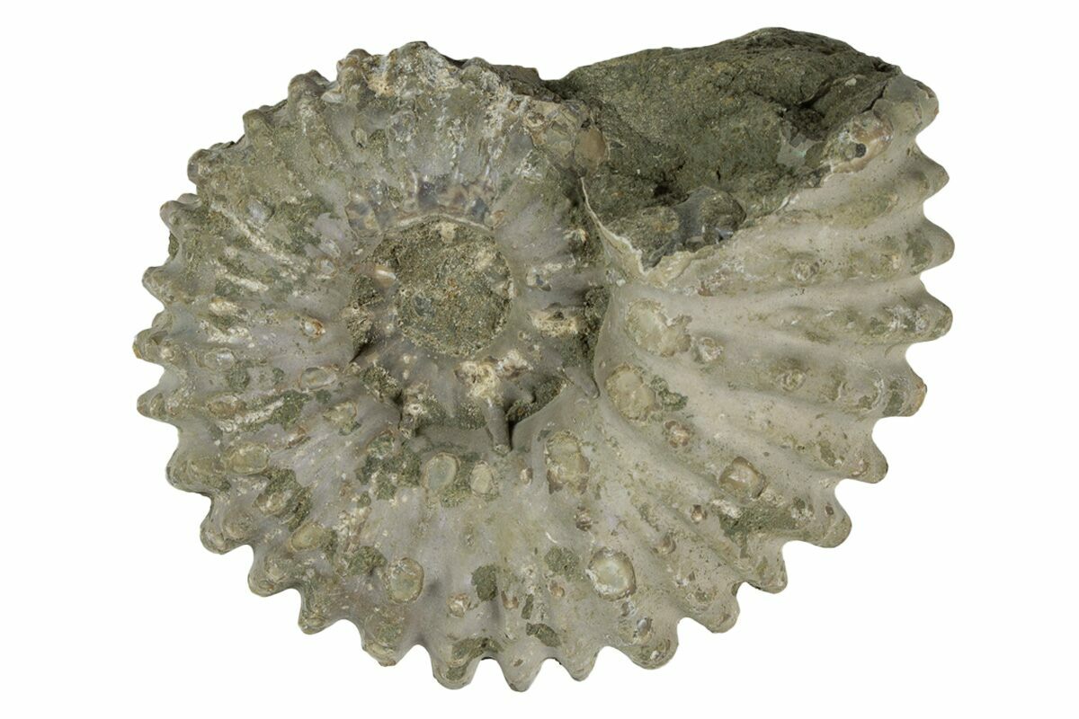 This is a nice Douvilleiceras ammonite from the Upper Cretaceous of Madagascar. This genus of ammonites has earned the local name "Tractor Ammonites", due to their distinctively bumpy surface and pronounced ridges making them resemble a tractor tire.