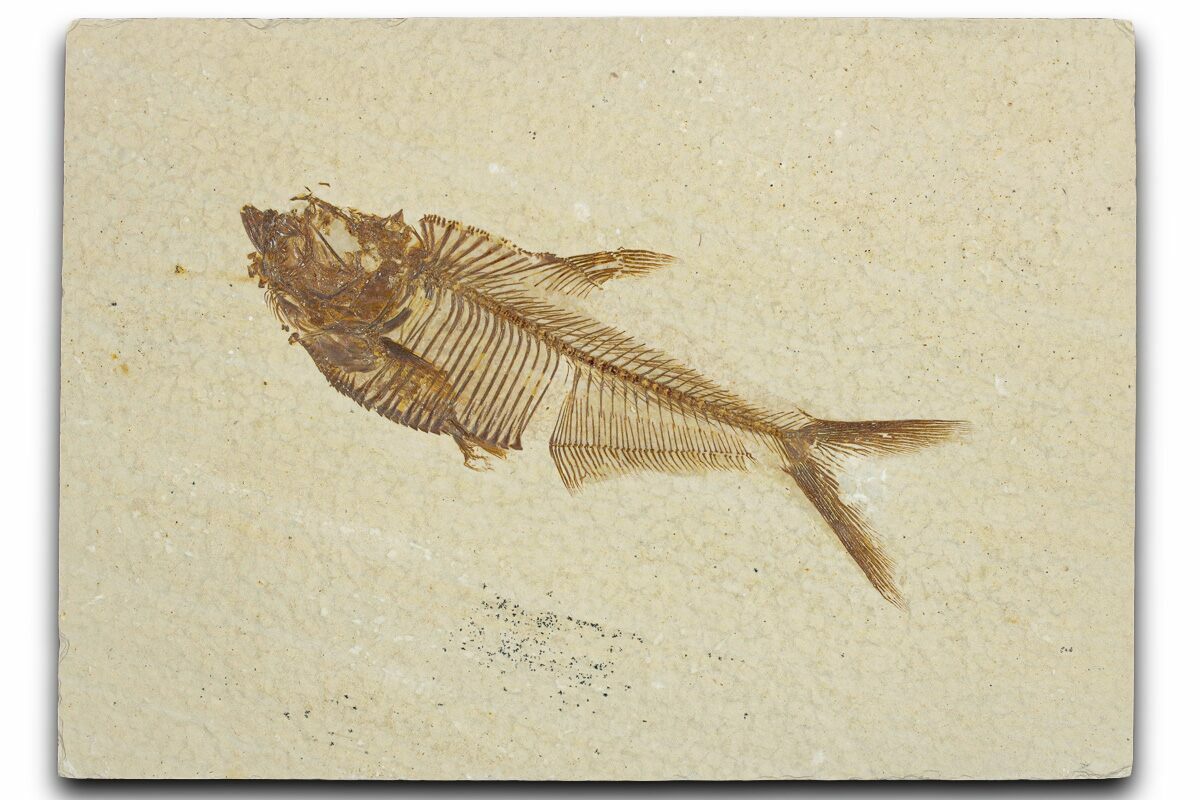 Today the wonderfully preserved fossils of Diplomystus and other Fossil Lake fauna are collected in several private quarries around Kemmerer, Wyoming. The best preserved fish fossils come from the coveted 18 Inch Layer. This layer is collected at night under high-powered lights, enhancing the faint signs of fish under the surface indicating underlying fossils. These “ghosted” fish then must go through many hours of manual preparation to remove the overlying rock and reveal the Green River fauna in all of its glory.