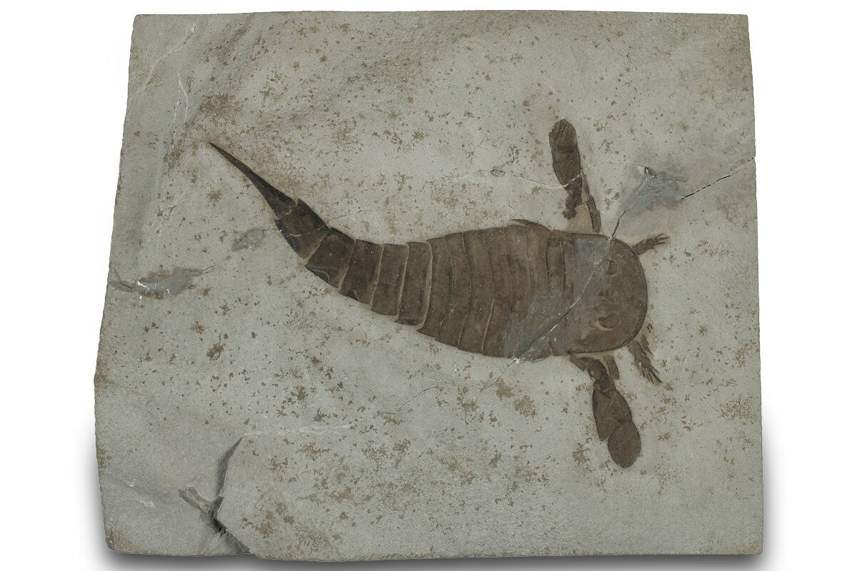 This is a 3.5" long Eurypterus remipes from Lang's Quarry in New York. It has about 5% restoration along a repaired crack.