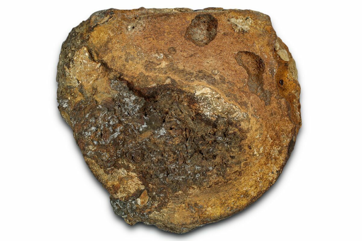 This is a 3.5" wide ichthyosaur (Brachypterigus cf. extremis) vertebra centrum from a Jurassic-aged deposit in Abingdon, England. It's Upper Jurassic in age, or approximately 154 million years old.