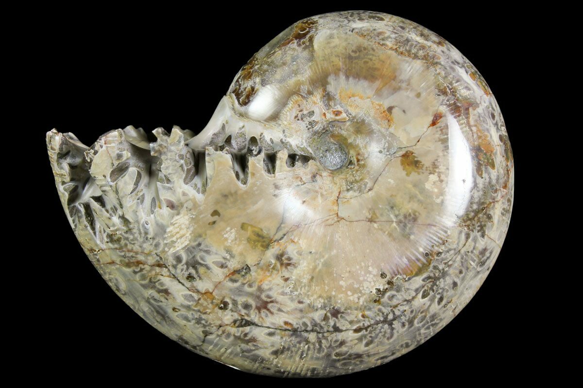 Ammonites were predatory, marine mollusks that thrived during the Paleozoic and Mesozoic eras, particularly in the Jurassic and Cretaceous periods, before going extinct around 66 million years ago. These creatures are characterized by their coiled, spiral shells, which resemble the modern-day nautilus. Ammonite shells were divided into chambers; as they grew, they built new chambers and sealed off the old ones. These chambers were filled with gas, which helped them control buoyancy in the ocean.