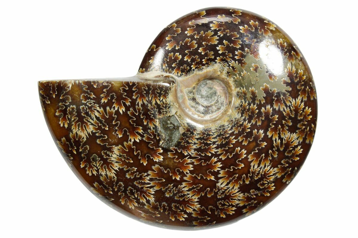 This is a 3.5" wide polished ammonite of the genus Cleoniceras, collected in Madagascar. It is absolutely gorgeous, displaying a distinctive "oak-leaf" suture pattern on the surface. This 110 million year old ammonite is truly a natural work of art, displaying beautifully on the included acrylic stand.