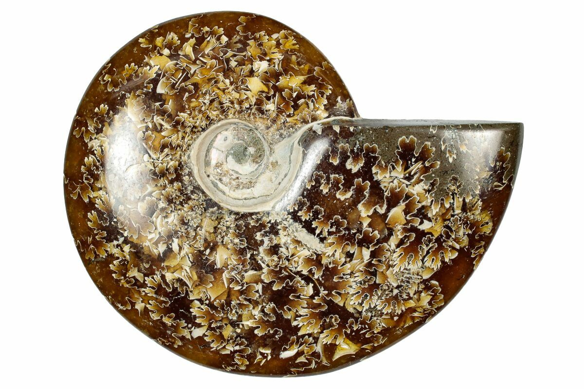 This is a 3.5" wide polished ammonite of the genus Cleoniceras, collected in Madagascar. It is absolutely gorgeous, displaying a distinctive "oak-leaf" suture pattern on the surface. This 110 million year old ammonite is truly a natural work of art, displaying beautifully on the included acrylic stand.