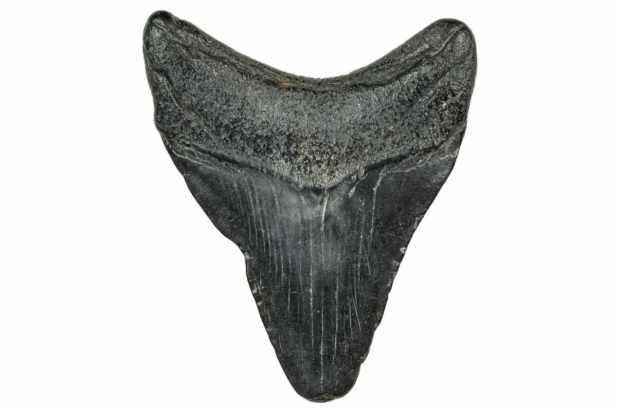 Megalodon had a cosmopolitan (global) distribution and its giant teeth can be found in deposits throughout the world. Some are collected on land in phosphate deposits, while many are collected from rivers and coastlines after eroding out of the rocks. This contributes to the water-worn, polished appearance of many teeth.
