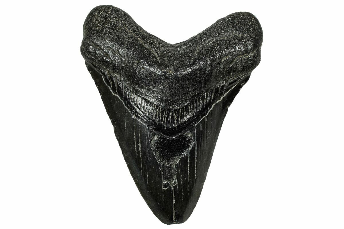 Megalodon had a cosmopolitan (global) distribution and its giant teeth can be found in deposits throughout the world. Some are collected on land in phosphate deposits, while many are collected from rivers and coastlines after eroding out of the rocks. This contributes to the water-worn, polished appearance of many teeth.