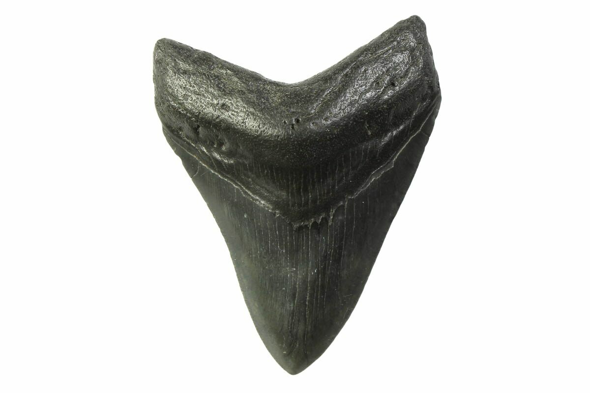 Megalodon had a cosmopolitan (global) distribution and its giant teeth can be found in deposits throughout the world. Some are collected on land in phosphate deposits, while many are collected from rivers and coastlines after eroding out of the rocks. This contributes to the water-worn, polished appearance of many teeth.