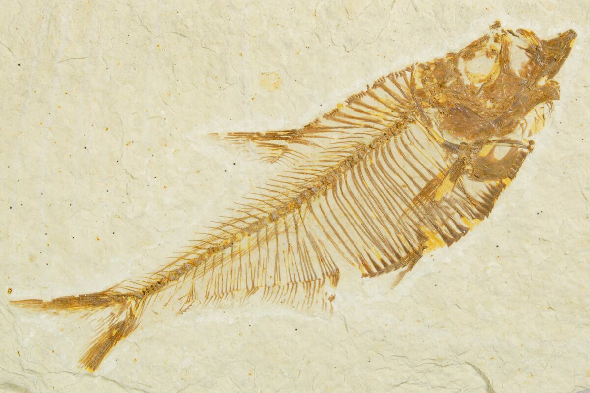 Today the wonderfully preserved fossils of Diplomystus and other Fossil Lake fauna are collected in several private quarries around Kemmerer, Wyoming. The best preserved fish fossils come from the coveted 18 Inch Layer. This layer is collected at night under high-powered lights, enhancing the faint signs of fish under the surface indicating underlying fossils. These “ghosted” fish then must go through many hours of manual preparation to remove the overlying rock and reveal the Green River fauna in all of its glory.