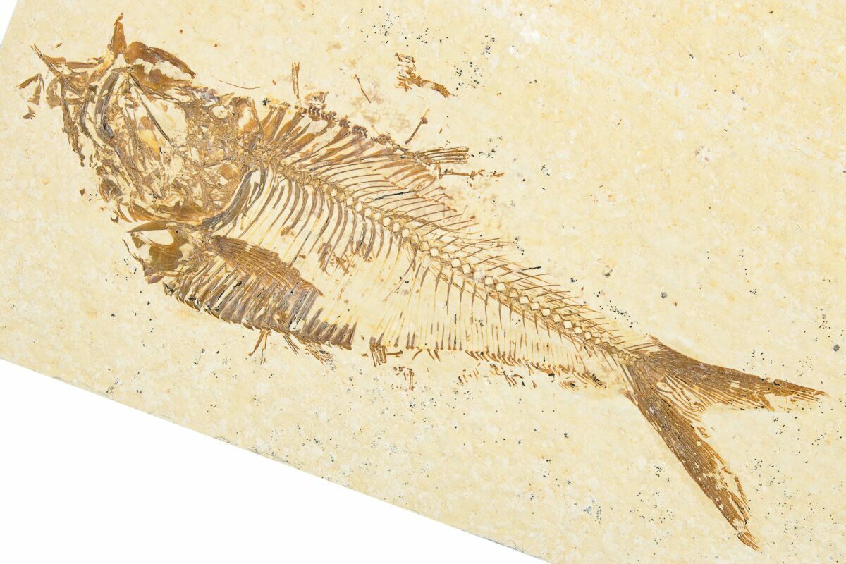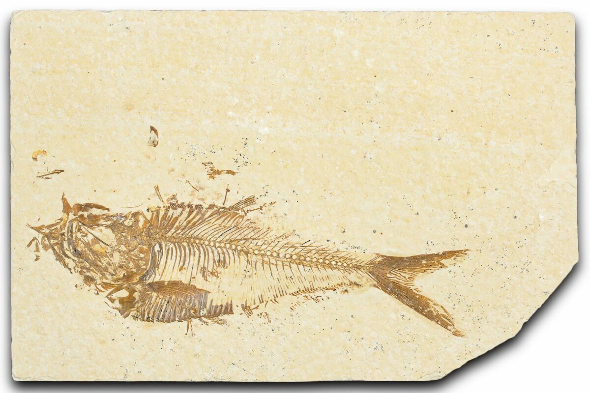 Today the wonderfully preserved fossils of Diplomystus and other Fossil Lake fauna are collected in several private quarries around Kemmerer, Wyoming. The best preserved fish fossils come from the coveted 18 Inch Layer. This layer is collected at night under high-powered lights, enhancing the faint signs of fish under the surface indicating underlying fossils. These “ghosted” fish then must go through many hours of manual preparation to remove the overlying rock and reveal the Green River fauna in all of its glory.
