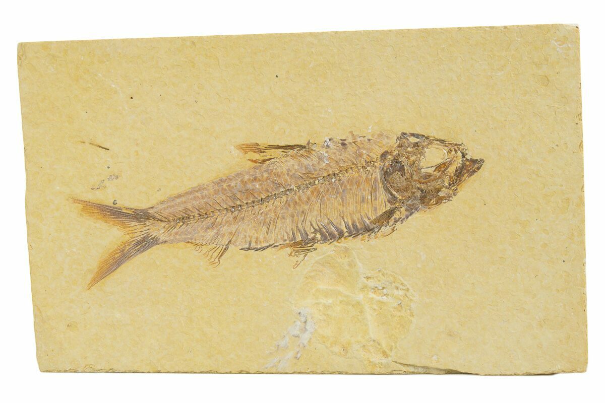 This is a detailed, 3.6" long fossil fish (Knightia eocaena) from our Fossil Lake Safari quarry near Kemmerer, Wyoming.