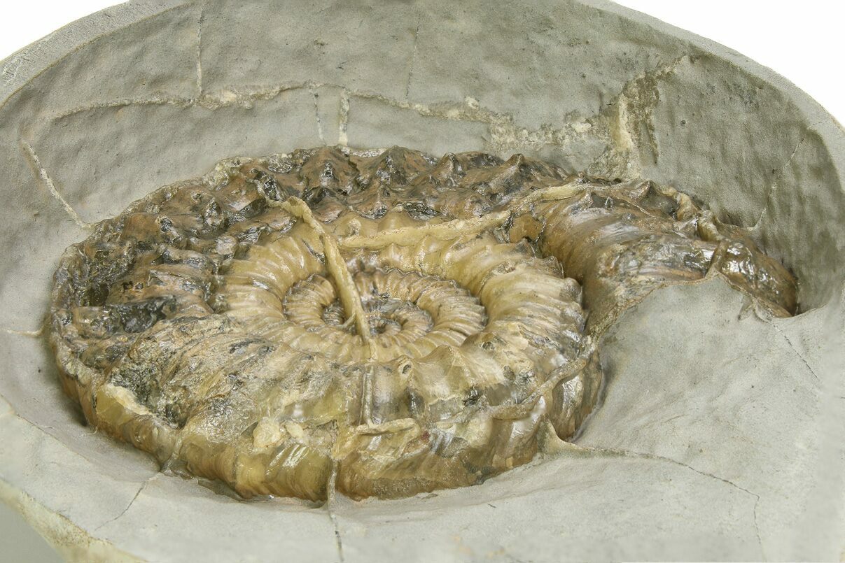 Ammonites were ancient marine cephalopods, similar to today's squids and octopuses, but with a defining feature: their distinctive, tightly coiled spiral shells. These shells, resembling those of modern nautiluses, served as both a protective home and a buoyancy aid, allowing ammonites to navigate the prehistoric seas with ease. First emerging around 240 million years ago in the Triassic Period, ammonites thrived for over 175 million years, adapting through numerous forms and sizes. As predatory creatures, they likely fed on smaller marine organisms, using their tentacles to capture prey. However, their long reign came to an end 65 million years ago at the close of the Cretaceous, coinciding with the mass extinction event that also eliminated the dinosaurs.